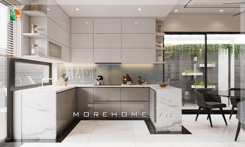 Không chỉ dừng lại ở việc mang lại vẻ ngoài sáng sủa cho bếp, việc ốp lát bếp bằng đá trắng cũng là biểu tượng của gu thẩm mỹ và phong cách cao cấp. Sự xuất hiện của ánh sáng tự nhiên được phản chiếu qua bề mặt trắng của các viên đá giúp không gian trong căn bếp trở nên rộng rãi hơn và thu hút ánh nhìn từ người xem. Chính vì vậy, việc chọn lựa phong cách này không chỉ là biểu hiện của sự tiện ích mà còn thể hiện cá tính và gu thẩm mỹ riêng biệt của gia chủ.