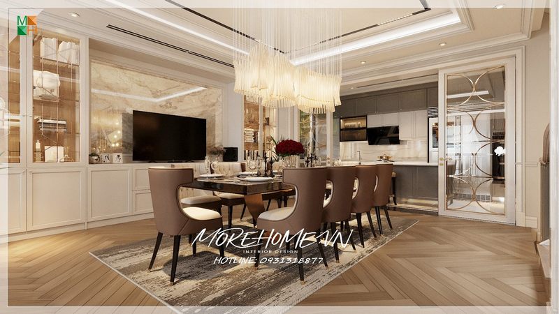 Thiết kế nội thất phòng bếp theo phong cách tân cổ điển dành cho căn hộ chung cư.
